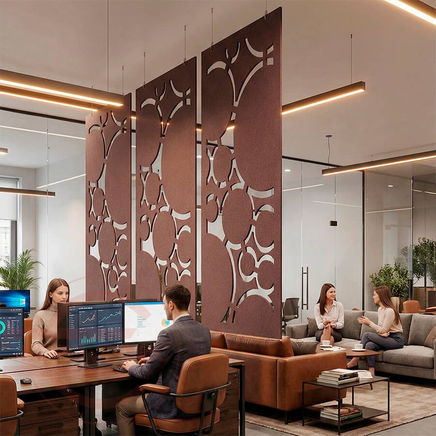 2. Комфорт: Войлок поглощает лишние звуки, делая разговоры конфиденциальными, а работу — сосредоточенной.