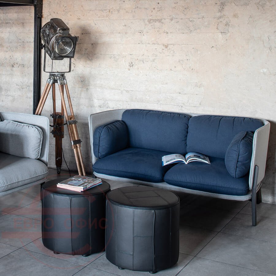 Коллекция Bellagio в складском ассортименте представлена двухместным диваном и креслом с тканевой обивкой в комбинации серого и синего цвета. Надежное буковое основание поддерживают металлические опоры черного цвета. Обивка — жаккардовая ткань двух цветов, состав — 100% полиэстер, мягкая на ощупь и износостойкая (более 80 000 циклов на тесте Мартиндейла). Съемные подушки отделаны крупным декоративным швом.