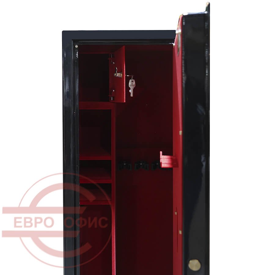 оборудованы патронным отделением, запирающимся на ключ и ложементами для ружей. В модели предусмотрена возможность анкерного крепления к полу и стене, тип покрытия: лак, внутренняя отделка – бархат; базовые цвета: черный, вишня. Возможна окраска в другие цвета по согласованию с производителем, любой сейф из номенклатуры ПРОМЕТ может быть исполнен в комплектации GOLD.