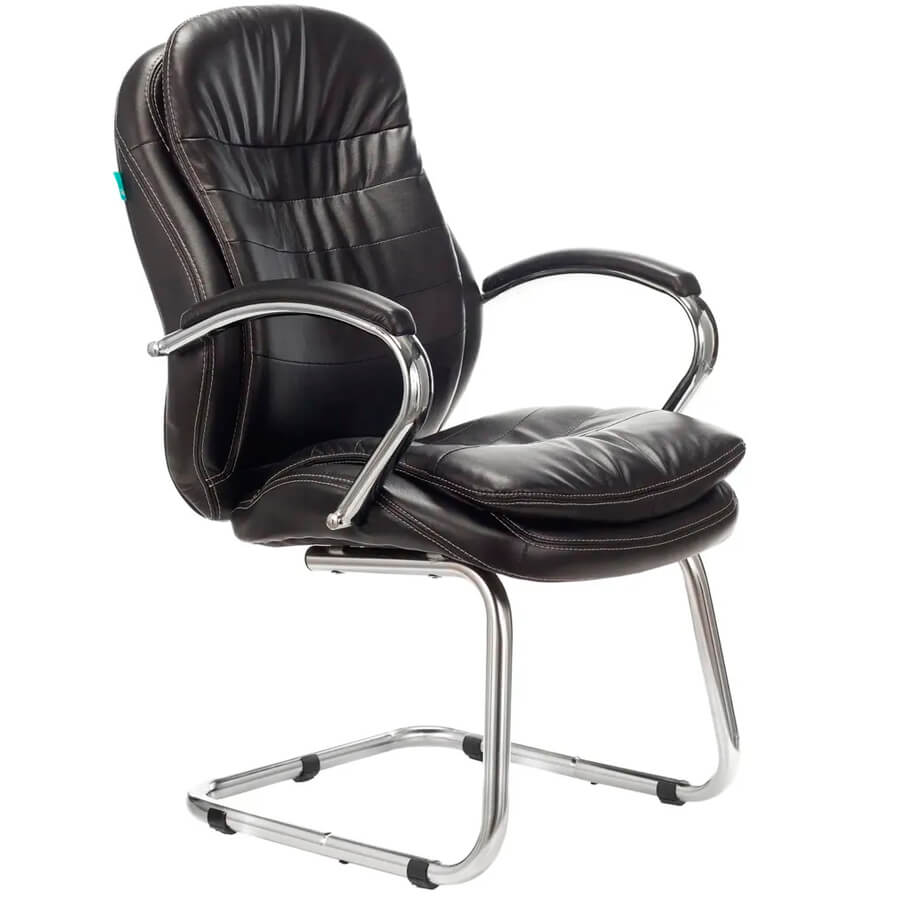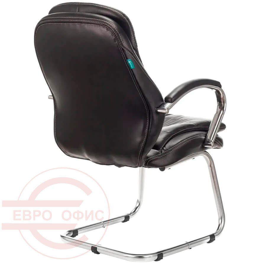 Каркас кресла Бюрократ T-9950AV выполнен из хромированного металла. П-образные опоры смотрятся изящно и не утяжеляют пространство. Они имеют специальные накладки, которые защищают пол от царапин и потертостей. Немного откинутая назад спинка поддерживает позвоночник и позволяет отдыхать с комфортом. Подлокотники покрыты мягкими подушками, которые выполнены из того же материала, что и кресло.