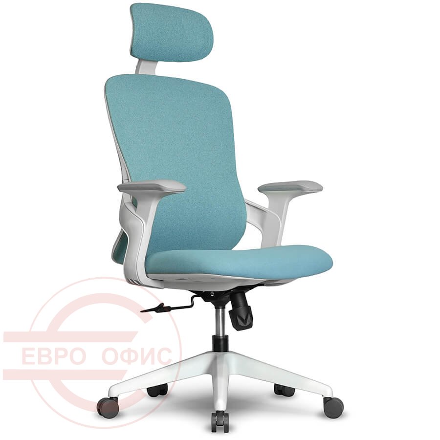 7257A-2 Кресло для руководителя Евро Офис, обивка ткань (Голубой MT05-4 + MТ02-9)