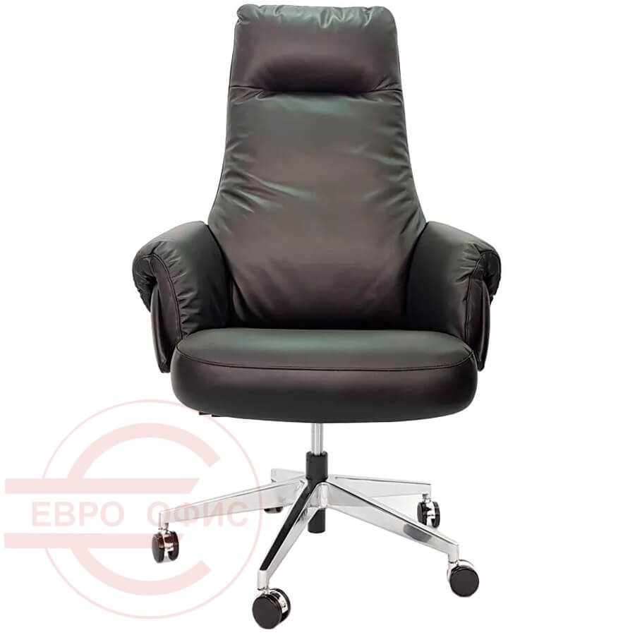 AR-C107L-H Кресло для руководителя Евро Офис, обивка кожа (Чёрный)