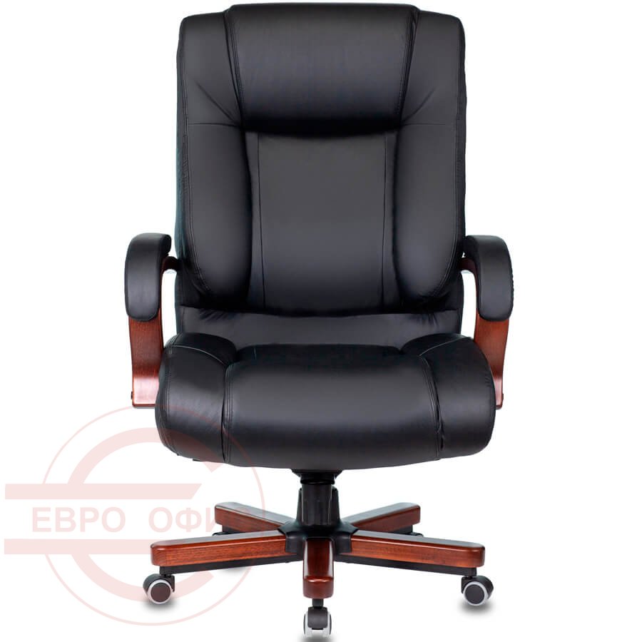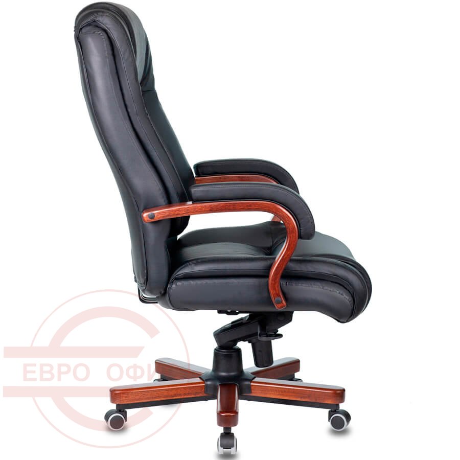T-9925WALNUT Кресло для руководителя Бюрократ, обивка кожа (Чёрный)