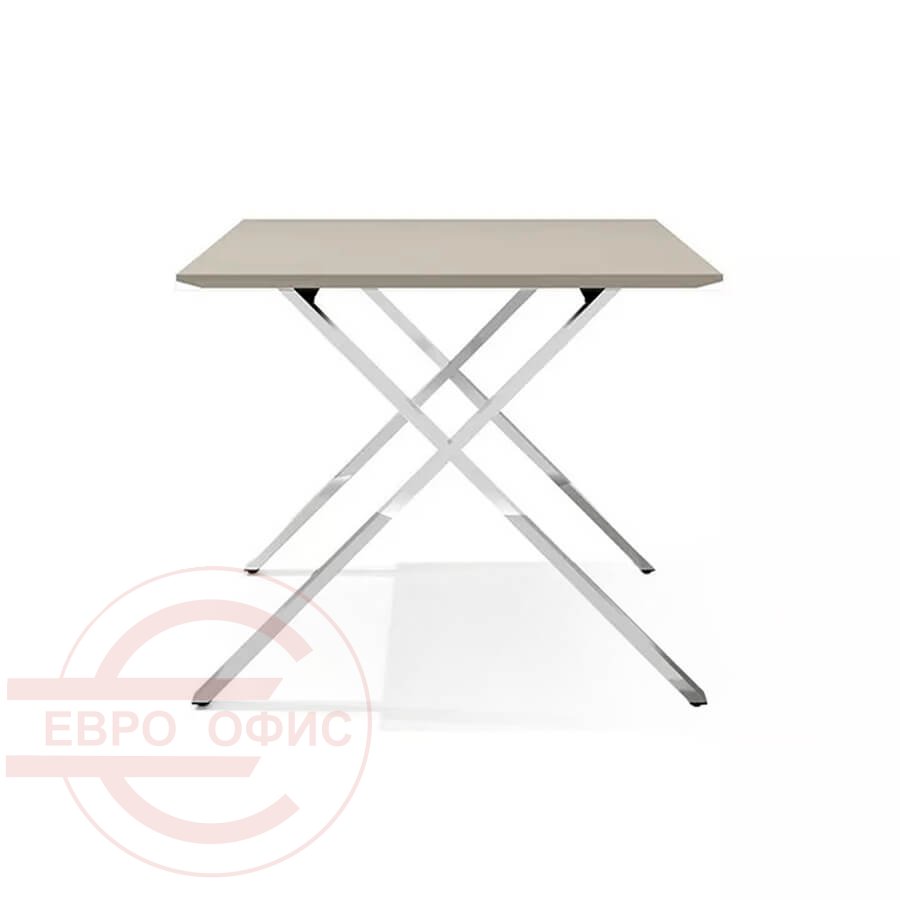 Столешница установлена на разборный металлический каркас и соединена с ним при помощи винтового крепежа, входящего в состав каркаса.