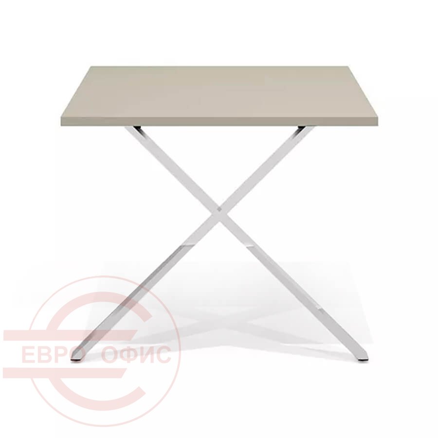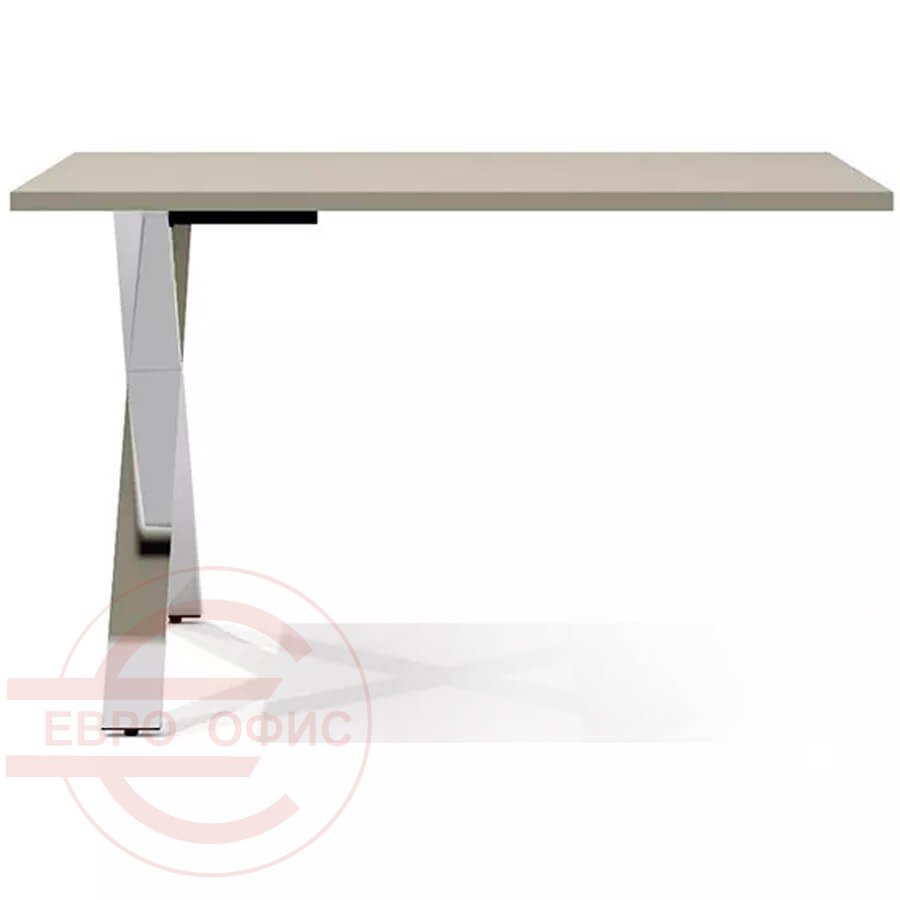 Столешница установлена на разборный металлический каркас и соединена с ним при помощи винтового крепежа, входящего в состав каркаса.