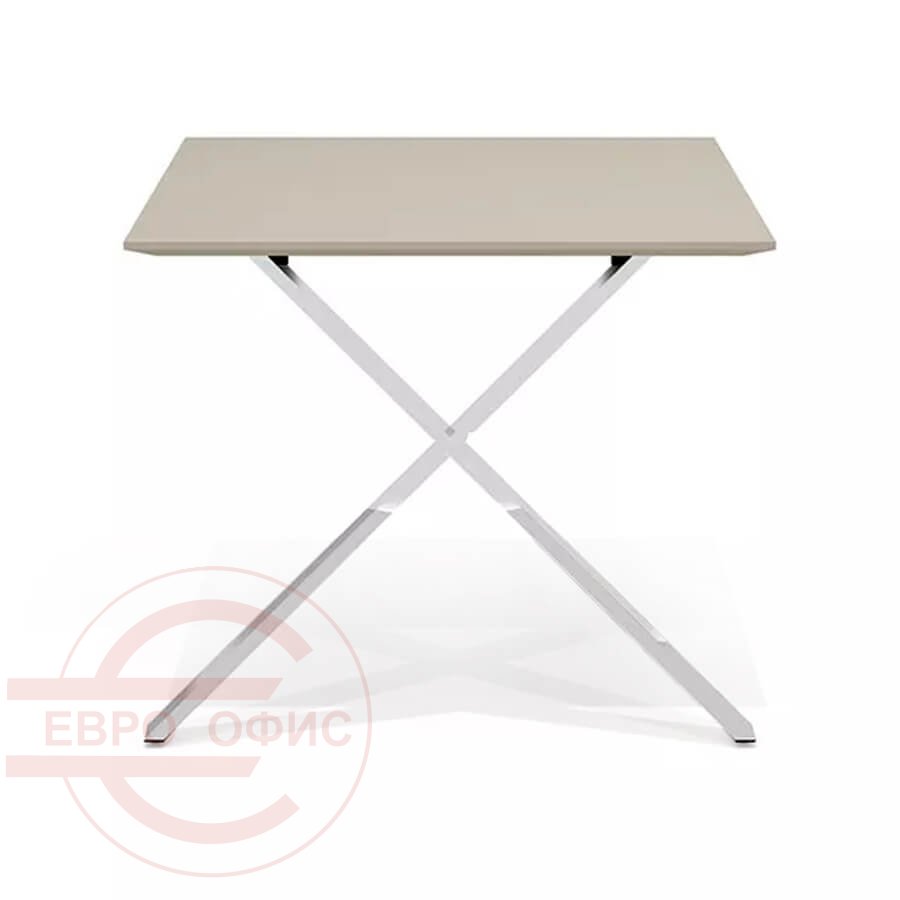 Столешница установлена на разборный металлический каркас и соединена с ним при помощи винтового крепежа, входящего в состав каркаса.