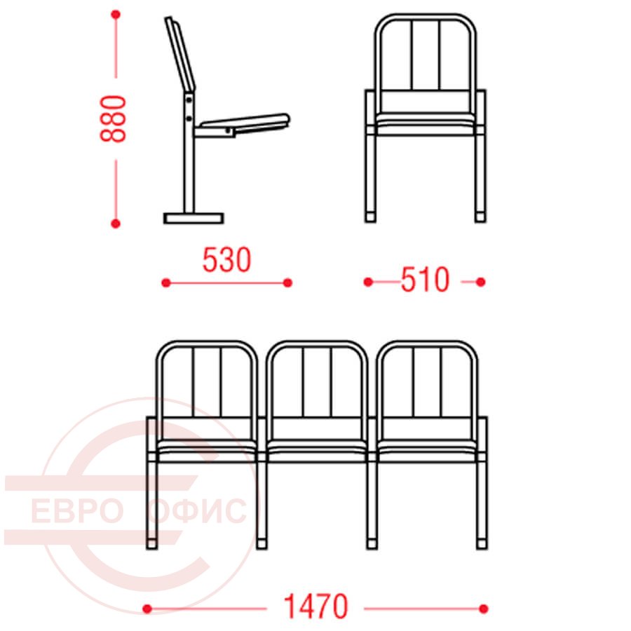 ЭРА КМ 12-03 Многоместная секция COMFORUM, обивка экокожа (Бордовый)