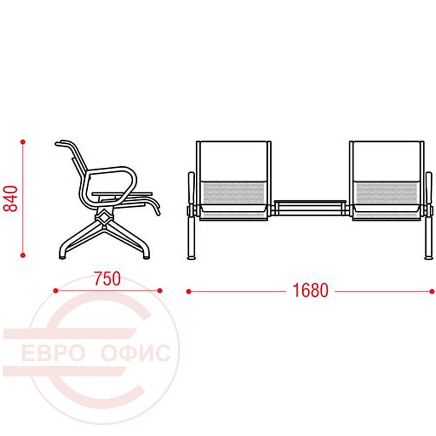 КРУИЗ 2П МС3/1-03 Многоместная секция, экокожа, металл