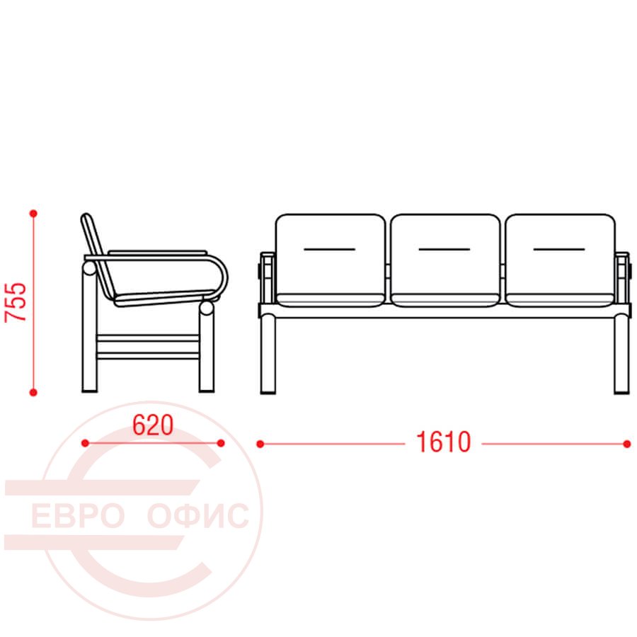 ТРОЯ UN 2П СМ 105/1UN-03 Многоместная секция, экокожа, металл с накладками