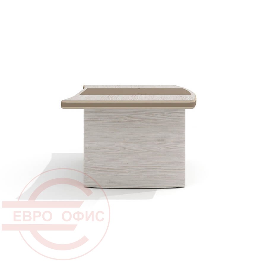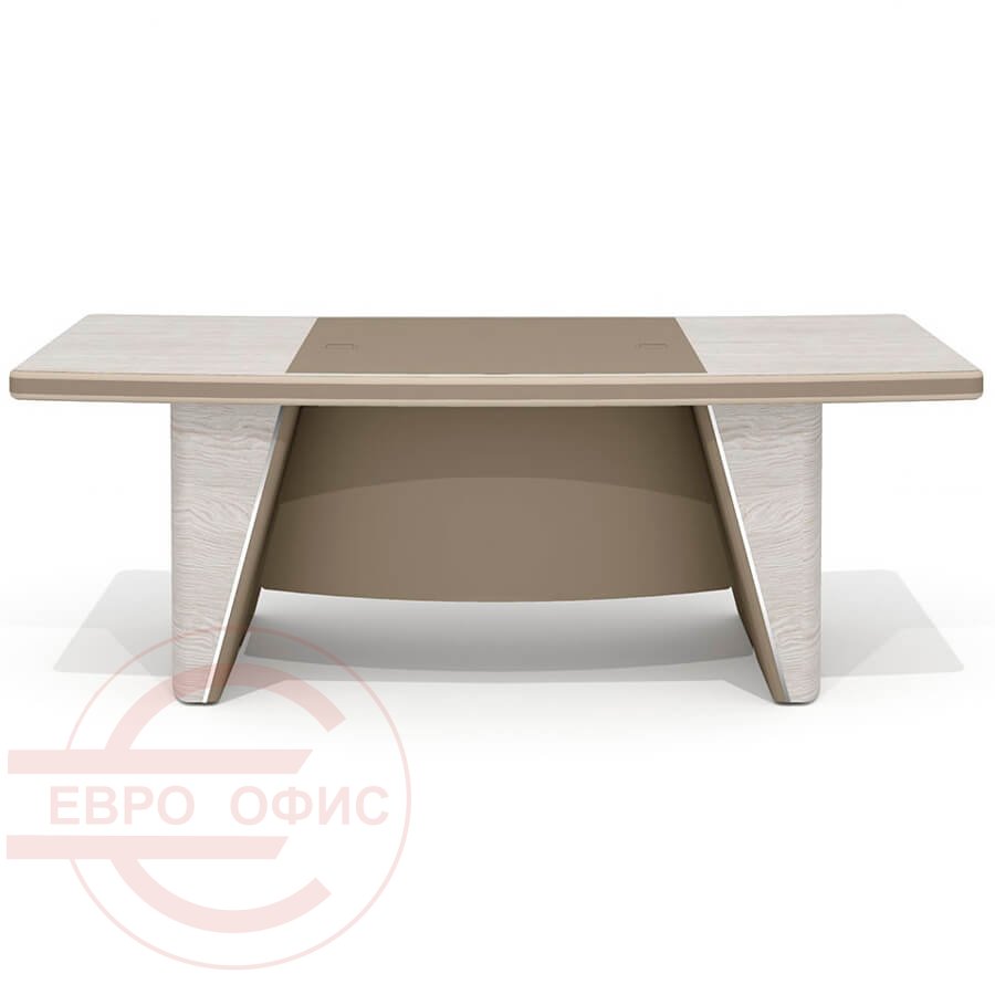 подвесной траверс с обивкой из экокожи в тон бювара и панелей на опорах стола.