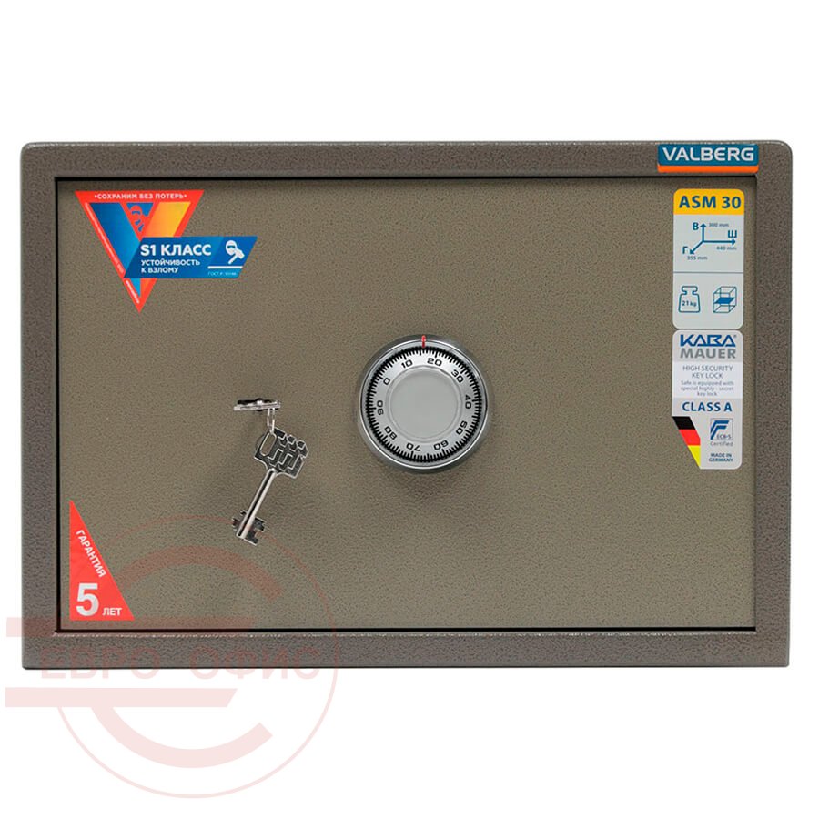 ASM-30 CL Мебельный сейф VALBERG, механический кодовый + ключевой