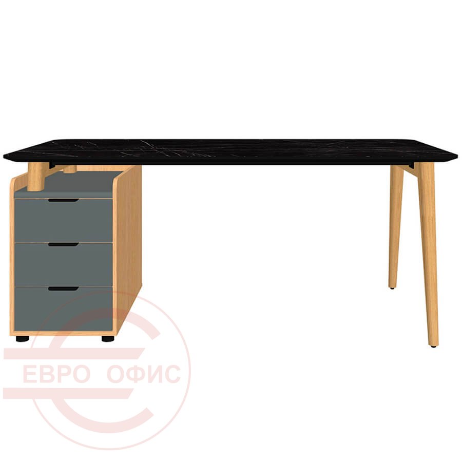 Rem-180.1L+ Rem-32 Стол письменный Мебель Стиль Remo (Мрамор черный/массив ясеня MS)