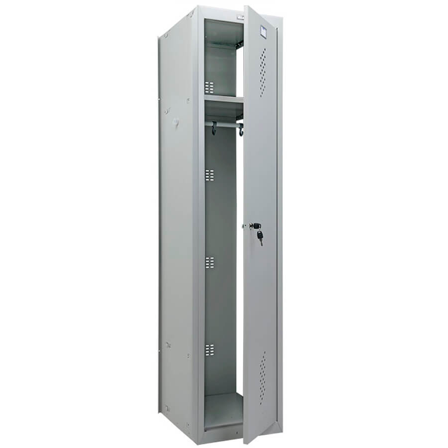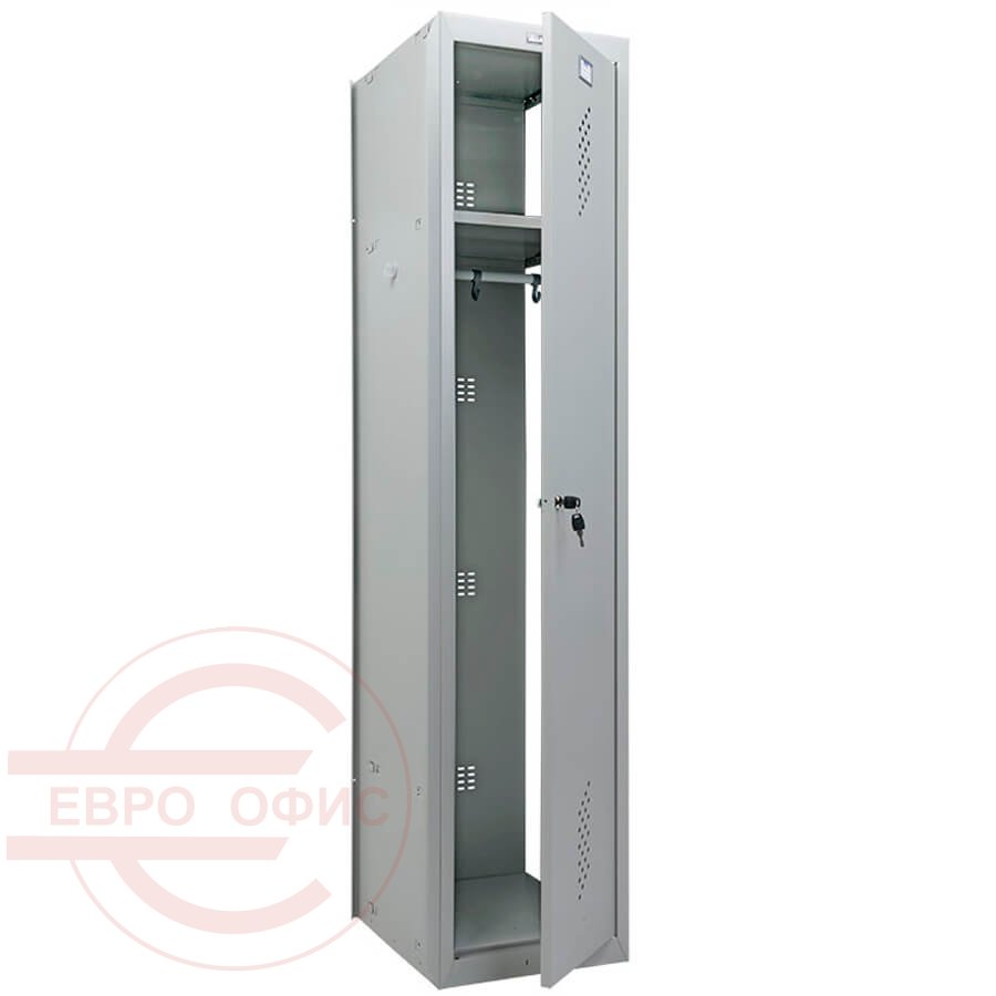 вертикальная сборка при помощи зацепов и заклепок. В основе ключевой замок «Практик» (2000 комбинаций), вентиляционные отверстия в дверях и задней стенке, модульная система локеров позволяет ставить в ряд любую комбинацию моделей. Конструкция шкафов позволяет скреплять их между собой, возможность наращивать секции в ряд за счет общей боковой стенки. Все модели совместимы, возможность установки двери с левой или правой стороной открывания. Комплектация: полка, перекладина, крючки