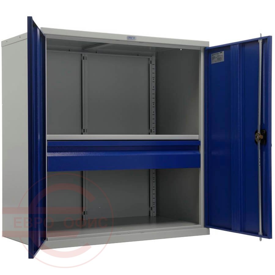 толщина стали 0,8 мм. (корпус,двери). Максимальная нагрузка на шкаф ТС 1095 — 200 кг; максимальная нагрузка на полку — 80 кг; максимальная нагрузка на ящик — 30 кг; шаг регулирования высоты полки — 50 мм. Поставляются в разобранном виде.