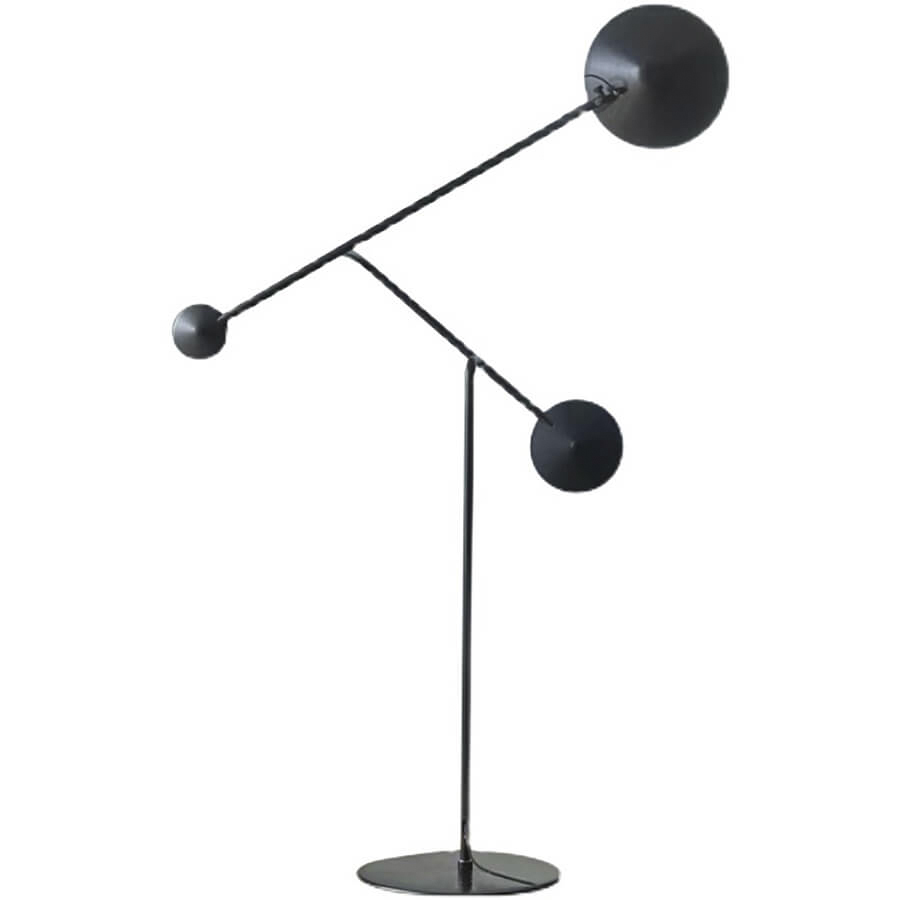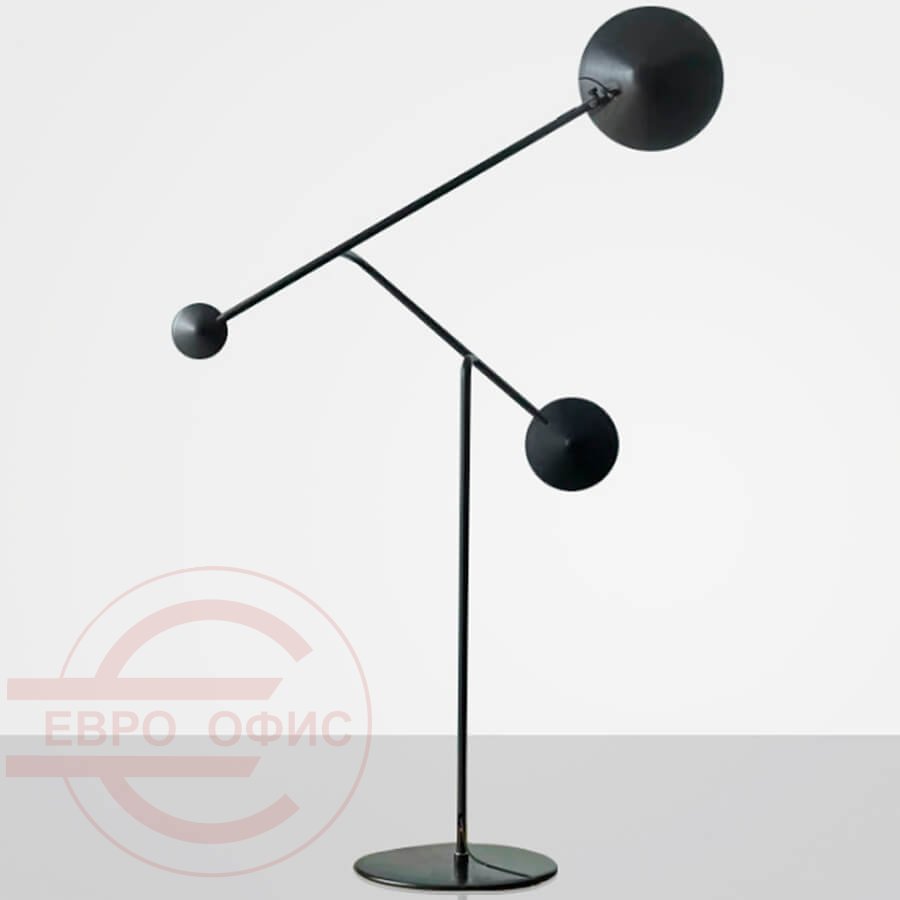 L5009 – интересное решение для современных интерьеров. Торшер напоминает мобиль – объект кинетического искусства. Шарнирная система позволяет создать множество вариантов освещения: как рассеянный свет, так и точечный. Основание, ножка и противовес - матовая чёрная лакированная сталь. Абажур поворачивается на 360°.
