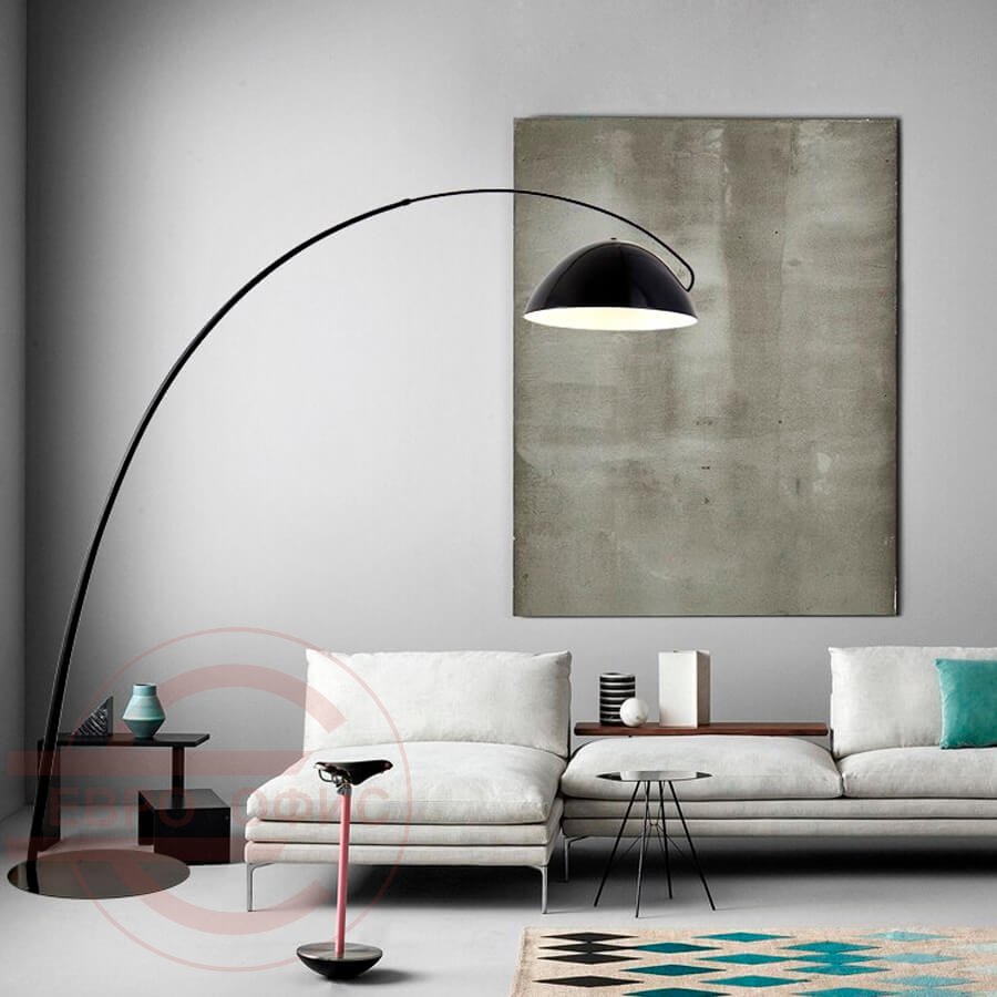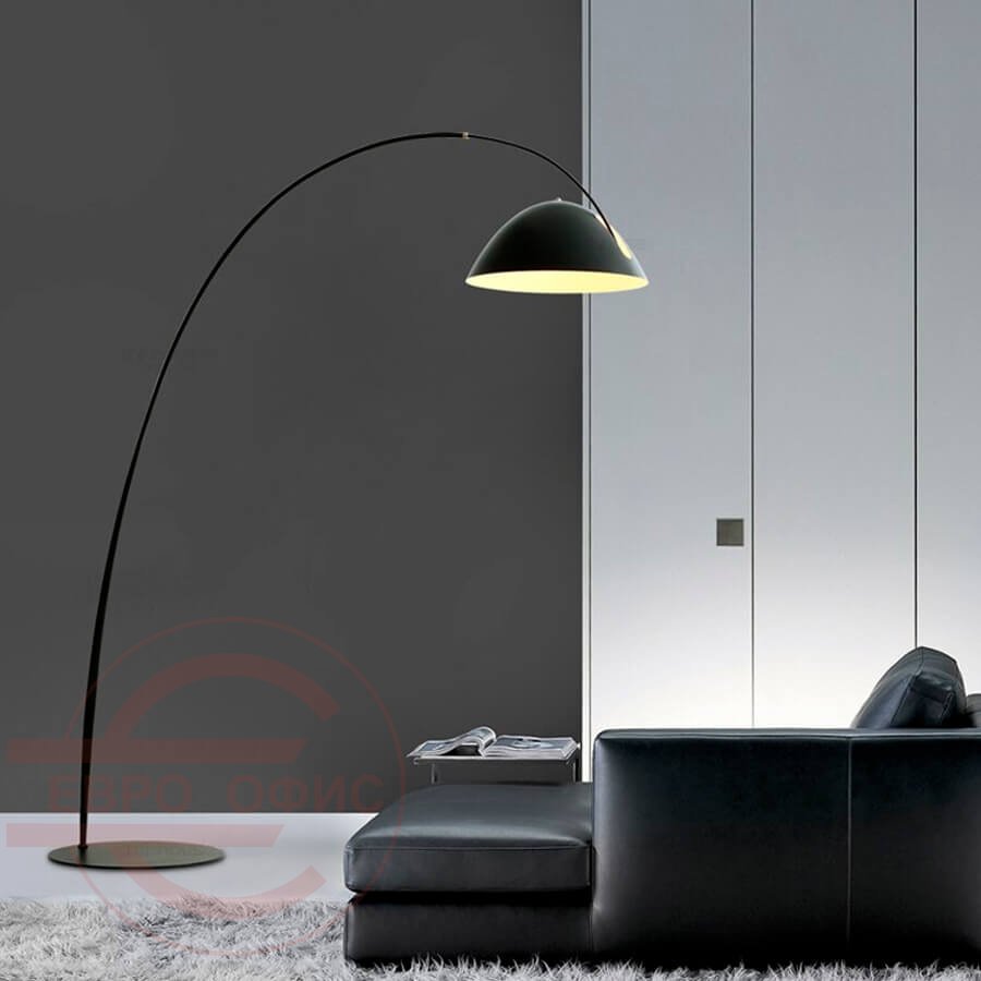 Минималистичный напольный светильник с оригинальным основанием. Крупный плафон в форме чаши выполнен из черного металла и мягко рассеивает свет по поверхности. Светильник прекрасно впишется в современный интерьер просторной гостиной или спальни, послужит стильным источником дополнительного освещения в зоне отдыха. Необычная форма основания привлекает внимание, а также позволяет удобно разместить крупный торшер в интерьере, не занимая много места.