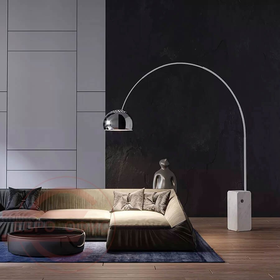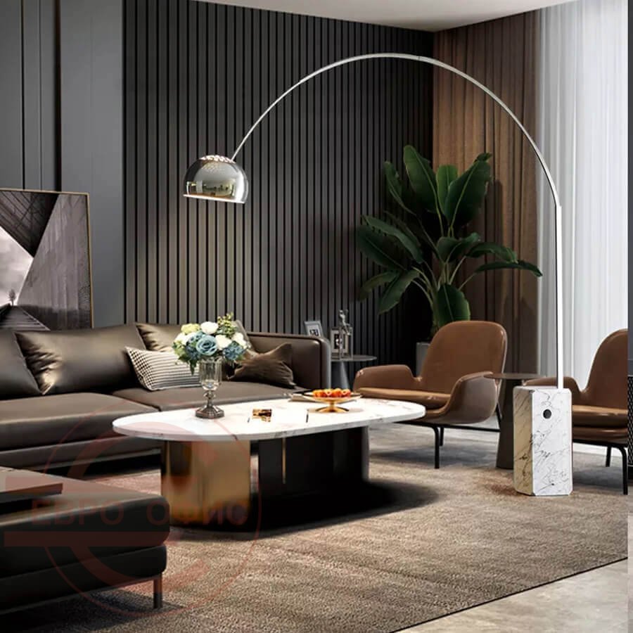 Торшер Arco от Flos Культовая модель, которую можно регулярно видеть на обложках журналов, посвященных интерьерной тематике. Мраморная база с отверстием предназначена для удобного перемещения торшера. Светильник дает прямой свет, высота плафона регулируется благодаря телескопическому штоку. Торшер рассчитан на одну лампочку мощностью 60W. Материал: Камень, металл. Количество ламп: 1. Количество плафонов: 1. Цоколь Е27.