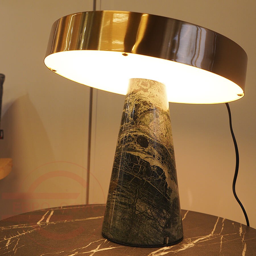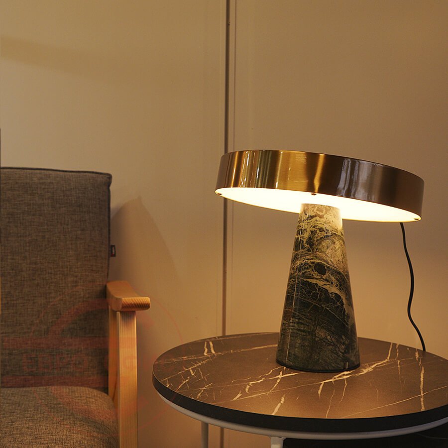 Высококачественная мраморная основа с медным металлическим абажуром. Светильник отличается стильным и ярким дизайном и станет отличным дополнением интерьера.