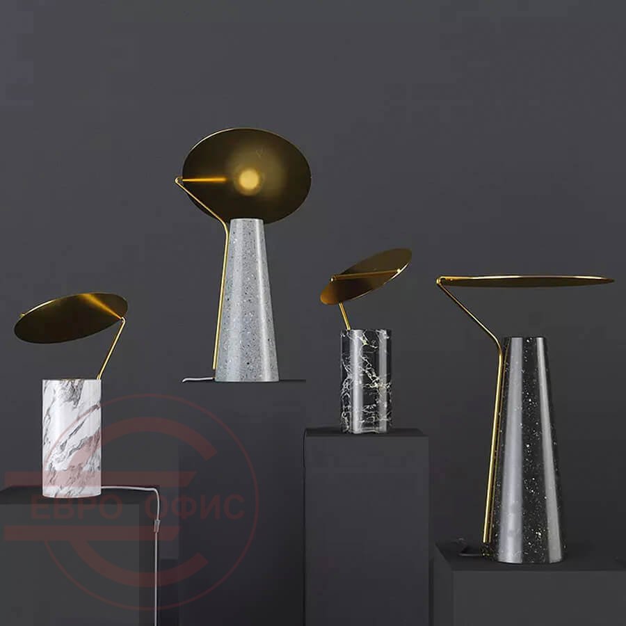 Высококачественная мраморная основа с медным металлическим абажуром. Светильник выполнен в современном стиле и отличается ярким и необычным дизайном.