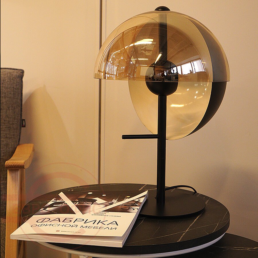 Настольная лампа в стиле THEIA Table Lamp by MARSET. Формальный дизайн Theia прост и обтекаем: две полусферы, одна расположена горизонтально, а другая - вертикально, которые пересекаются друг с другом. Основание из лакированного железа. Диссипатор - лакированный алюминий со встроенным переключателем.