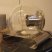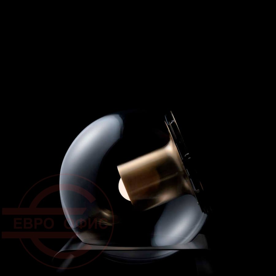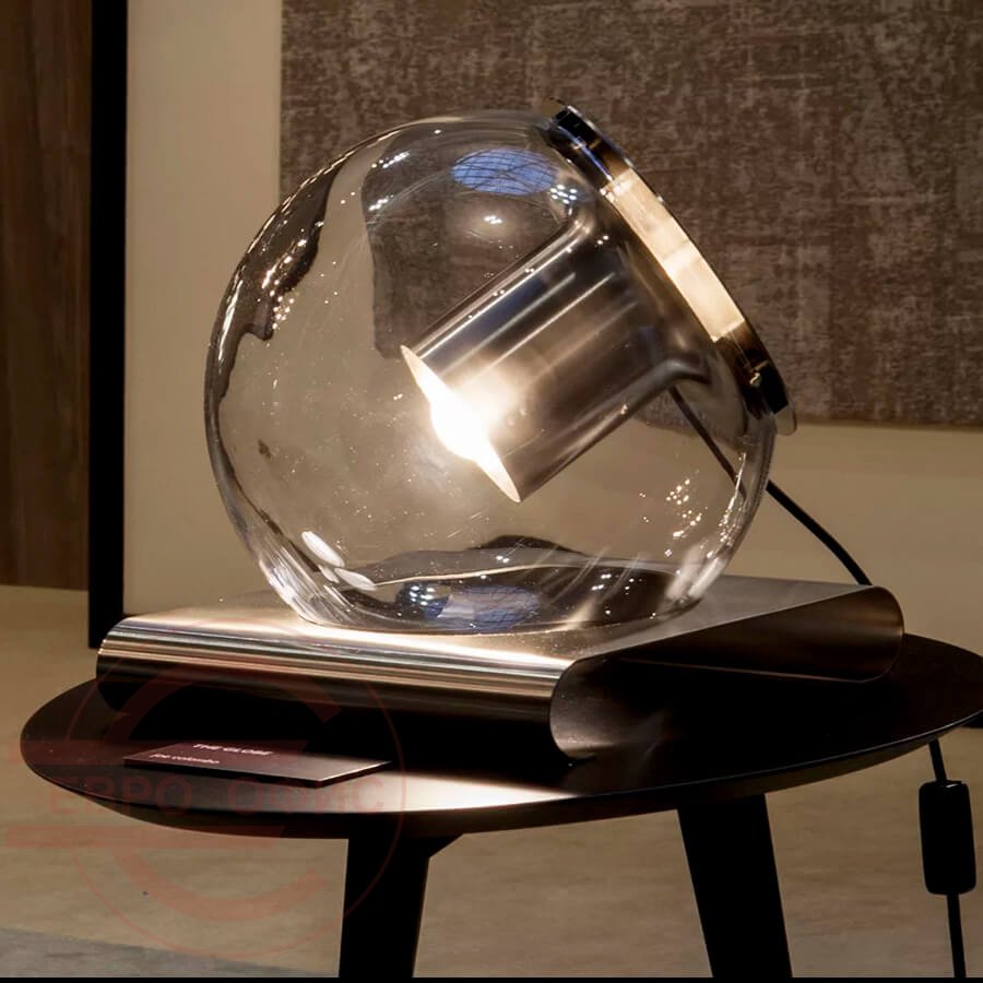 Прозрачный шар из выдувного стекла содержит цилиндрический металлический отражатель, который рассеивает свет вокруг себя.