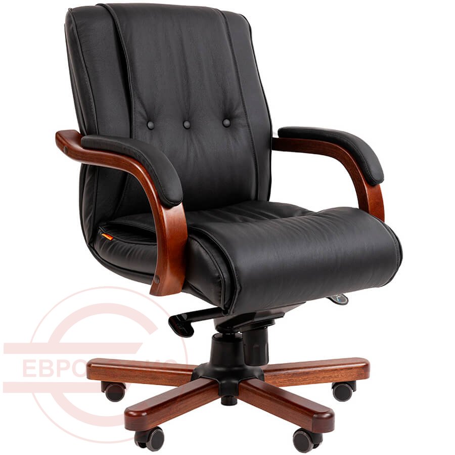 653 М Кресло для руководителя Chairman, обивка кожа (Чёрный)