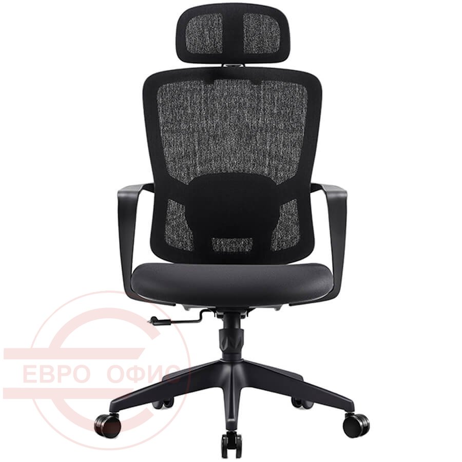 7256A-1 Кресло для руководителя Евро Офис, обивка сетка / ткань (Черный MT05-1 + MТ02-1)
