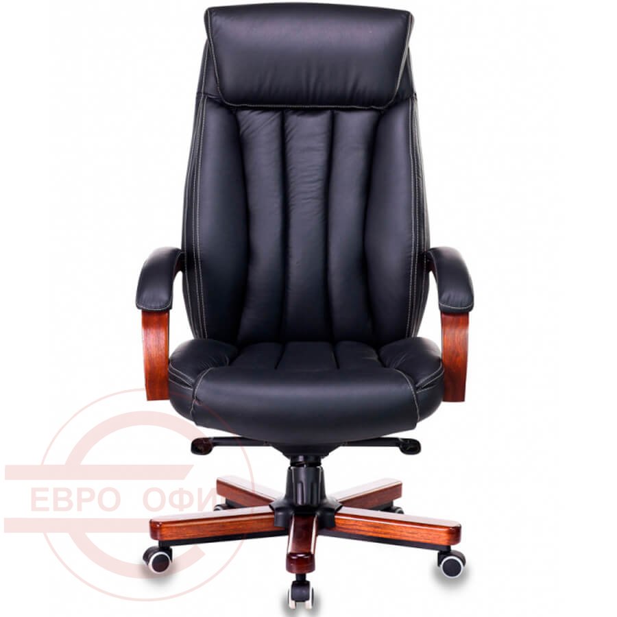 T-9922WALNUT Кресло для руководителя Бюрократ, обивка кожа (Чёрный)