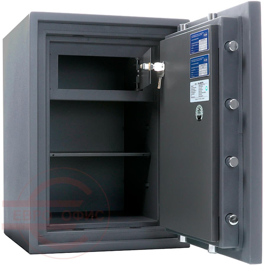 Огнестойкость: ГОСТ Р 57384-2017: класс 60Б (ГОСТ Р). При заливке двери и корпуса сейфа используется запатентованная система армирования огнестойкого бетона. 3-х сторонняя усиленная ригельная система запирания. Защита замка и ригелей от высверливания и выбивания. система блокировки ригельного механизма при выбивании замка. Тепловой замок, усиленный огнестойким уплотнителем. Толщина защитного слоя двери – 33мм, общая толщина двери - 105мм. Толщина боковых стенок - 77мм; толщина задней стенки – 51мм. Комплектуются электронным кодовым замком PS 610/E36. Наличие анкерного крепления к полу, анкерный болт в комплекте