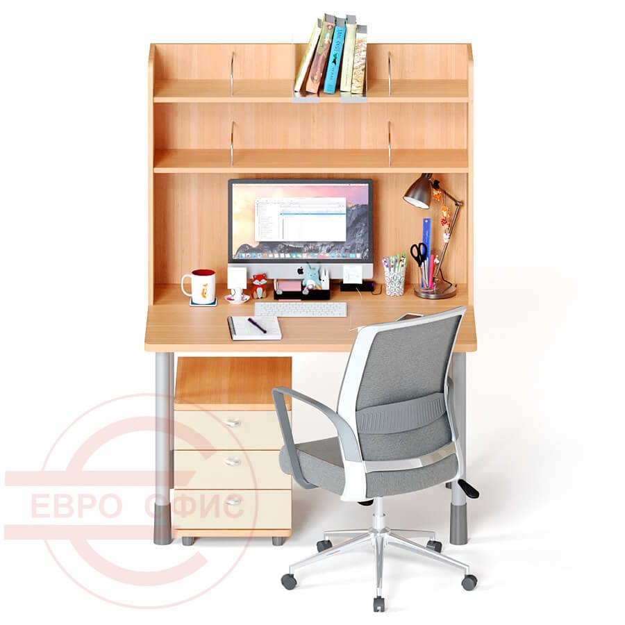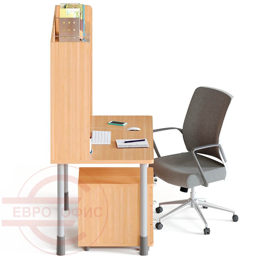 Столешница: ЛДСП 32 мм, Кромка 3 мм., крепится к металлическим опорам, облицованным ударопрочным порошковым покрытием. Столешница усилена металлическим профилем. Изменение высоты от 62 до 72 см. Кабель-канал.