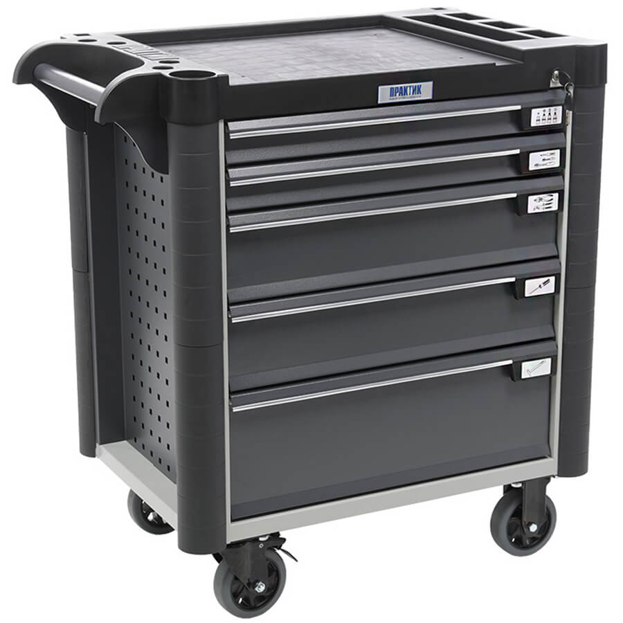 Топ (пластик черного цвета) оснащён ложементами под инструменты для организации, хранения и удобства использования во время выполнения работ. Нагрузка на ТОП – 40 кг